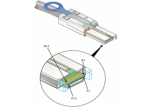 The Mini SAS 4x cable plug connector and the MiniSAS 4x active plug connector are the free (plug) 26-circuit shielded compact multilane connector defined in SFF-8088 and SFF-8086.